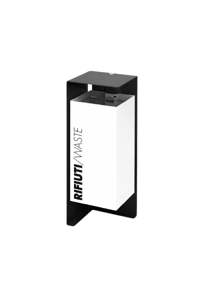 Designul său vertical și compact optimizează spațiul, în timp ce recipientul interior ușor de accesat facilitează golirea și întreținerea. Inscripția grafică „Rifiuti / Waste” adaugă un accent contemporan și clar funcțional, potrivit pentru zone cu trafic intens.